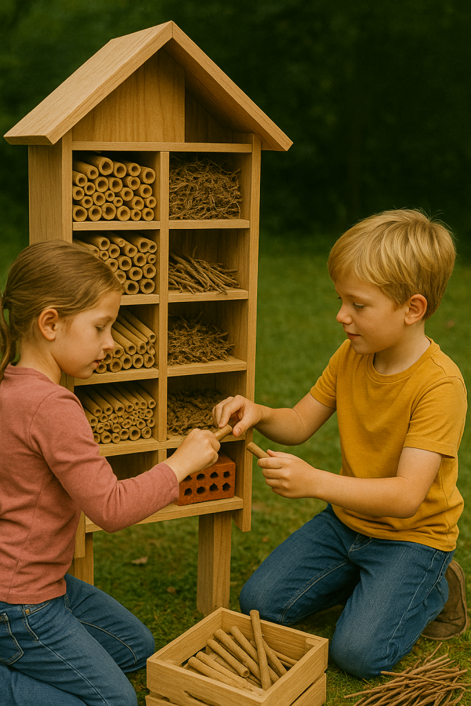 Ein Insektenhotel selber zu bauen, ist eine tolle Aktivität für Großeltern und Enkelkinder. Gemeinsam basteln, lernen – und später das emsige Treiben beobachten.